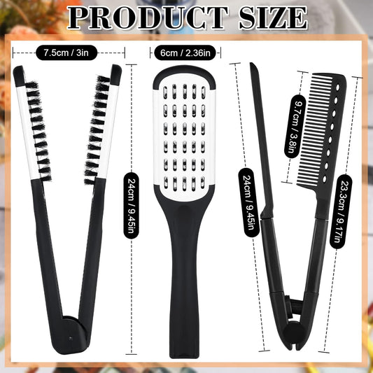• 2 Pcs Boar Bristle Brushes - Double Sided Clamp Brush and Flat Iron Comb for Straightening Knotty, Unkempt Hair (Black White, Black)