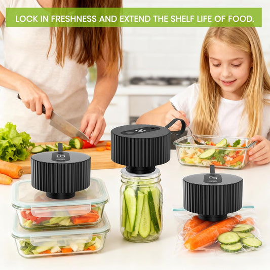 2025 Upgrade 3-In-1 Electric Mason Jar Vacuum Sealer Kit,One-Touch Electric Sealing, for Wide-Mouth Regular-Mouth Mason Jars, Portable Vacuum Sealer for Jars, Gifts for Mom, Grandma (Black)