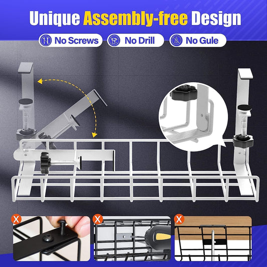 Under Desk Cable Management Tray 2 Pack, Wire Management No Drill No Screws, Cable Tray with Clamp for Desk Wire Management, Computer Cable Rack for Office, Home - No Damage to Desk White