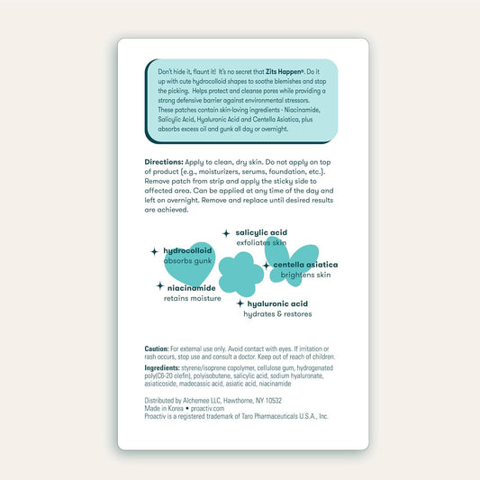 Zits Happen® Hydrocolloid Acne Patches- Pimple Patches for Face and Back Acne with Pore Cleansing Salicylic Acid- 30 Count