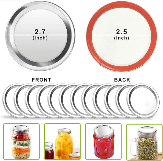 80 Count Regular Mouth Canning Lids,70Mm Mason Jar Canning Lids, Reusable Leak Proof Split-Type Lids with Silicone Seals Rings (70MM, 80 Count)