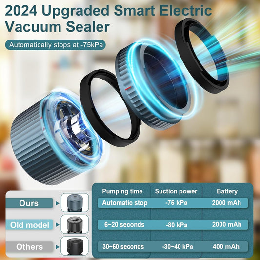 Smart Electric Vacuum Sealer for Mason Jar - Wide and Regular Mouth Canning Jars - Portable Food Storage Solution