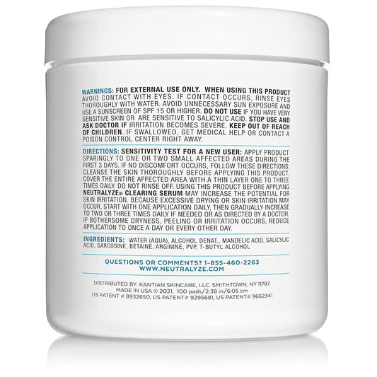 Exfoliating Acne Treatment Wipes - Maximum Strength, Textured Acne Pads with 2% Mandelic Acid & 2% Salicylic Acid for Face & Body - Suitable for All Skin Types, Teens & Adults (100 Wipes)