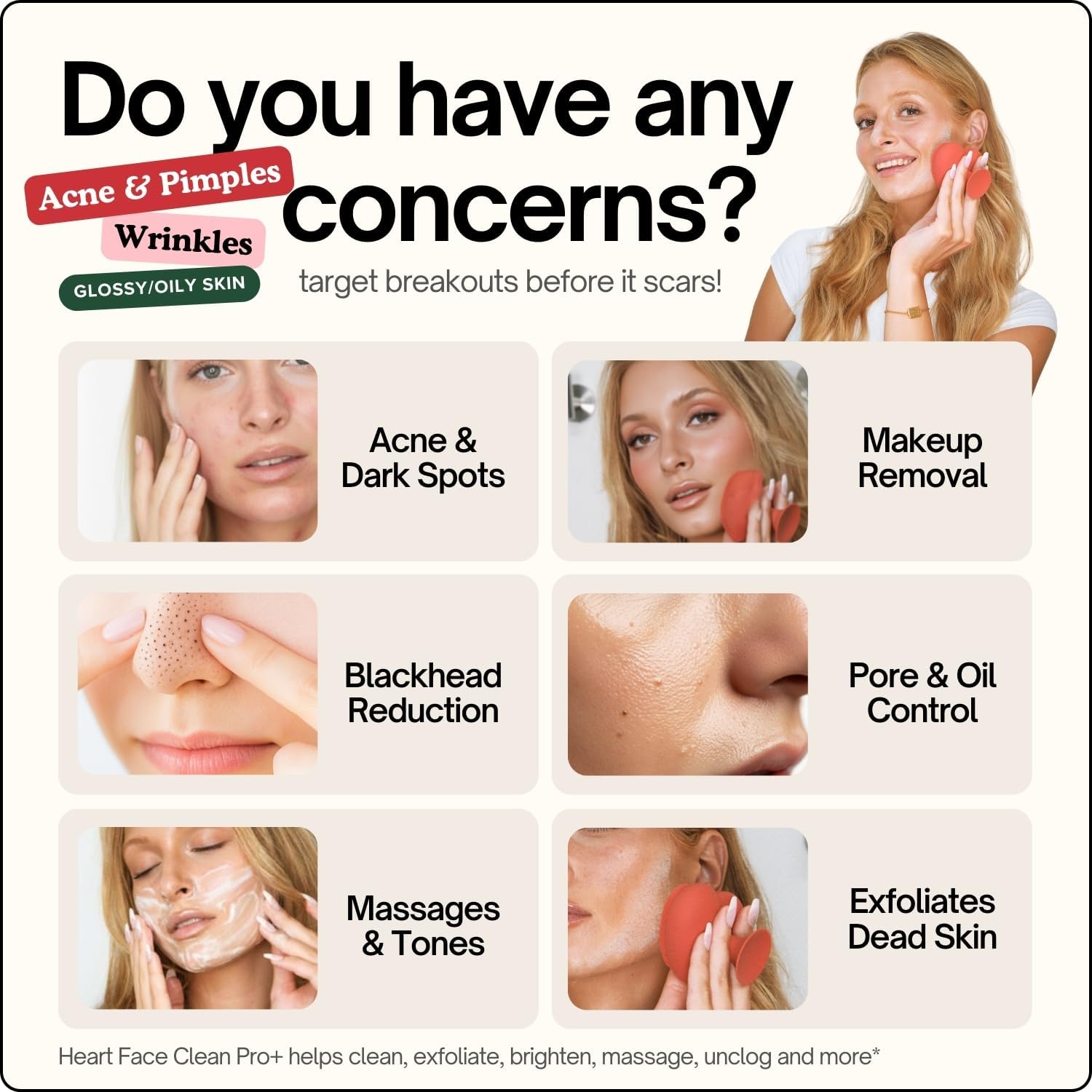 - HEART-SHAPED PRECISION: The unique heart-shaped face cleanser brush design effortlessly follows every curve of your face, reaching tricky areas like the nose, chin, and hairline with ease. Experience deeper pore cleansing in just one simple step